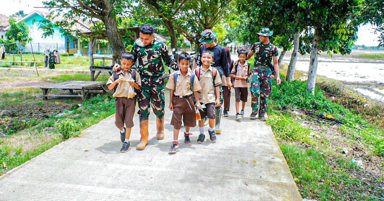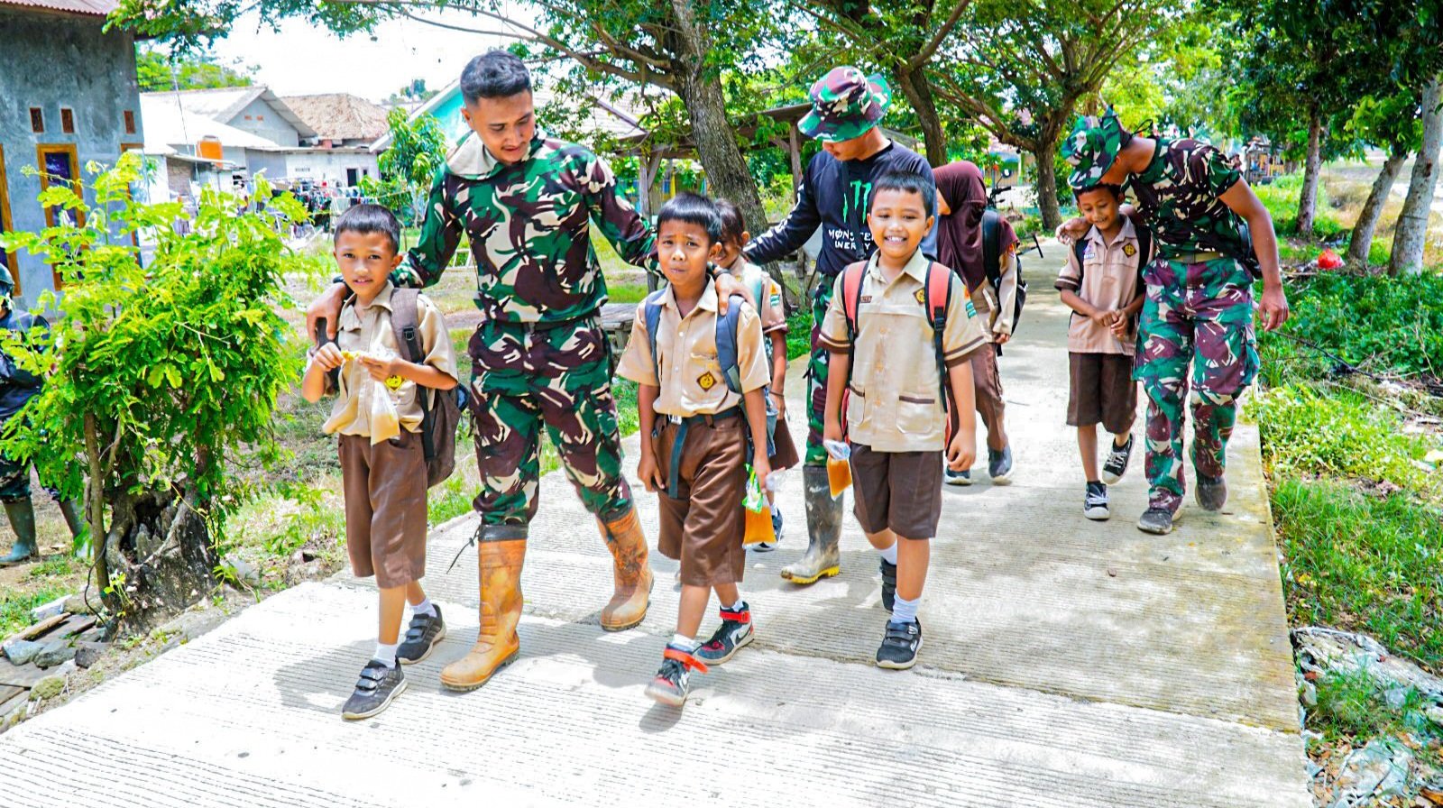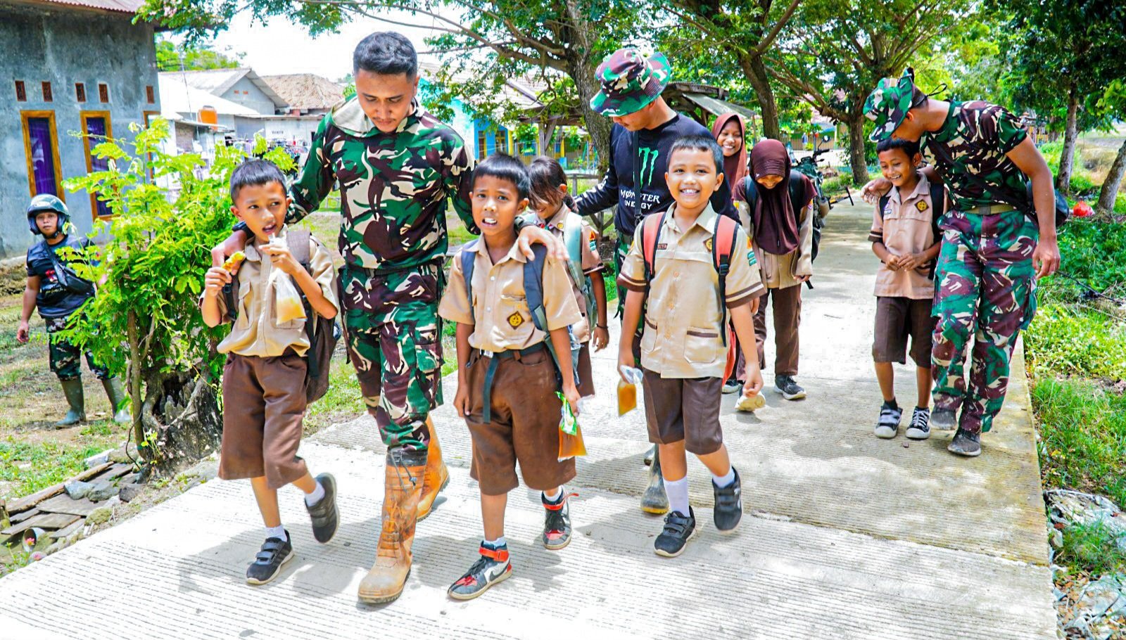 Dengan penuh antusias, anak-anak menyambut kedatangan para prajurit yang tidak hanya menjadi pelindung masyarakat, tetapi juga sosok inspiratif bagi generasi muda.