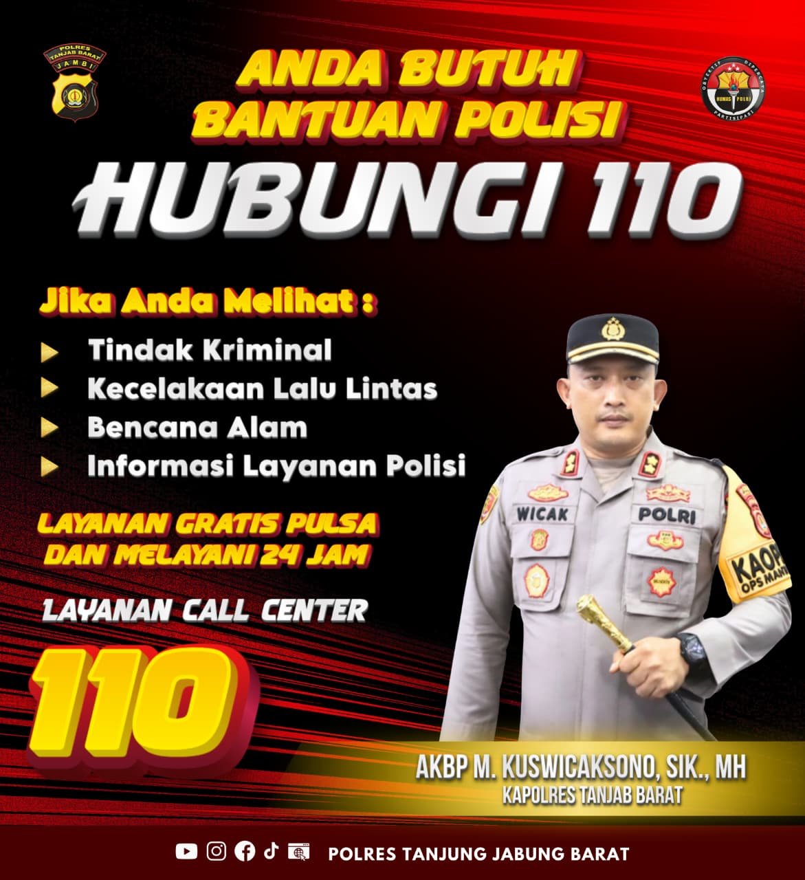 Lapor Polisi Kini Lebih Mudah, Polres Tanjab Barat Gencarkan Layanan Call Center 110 Gratis