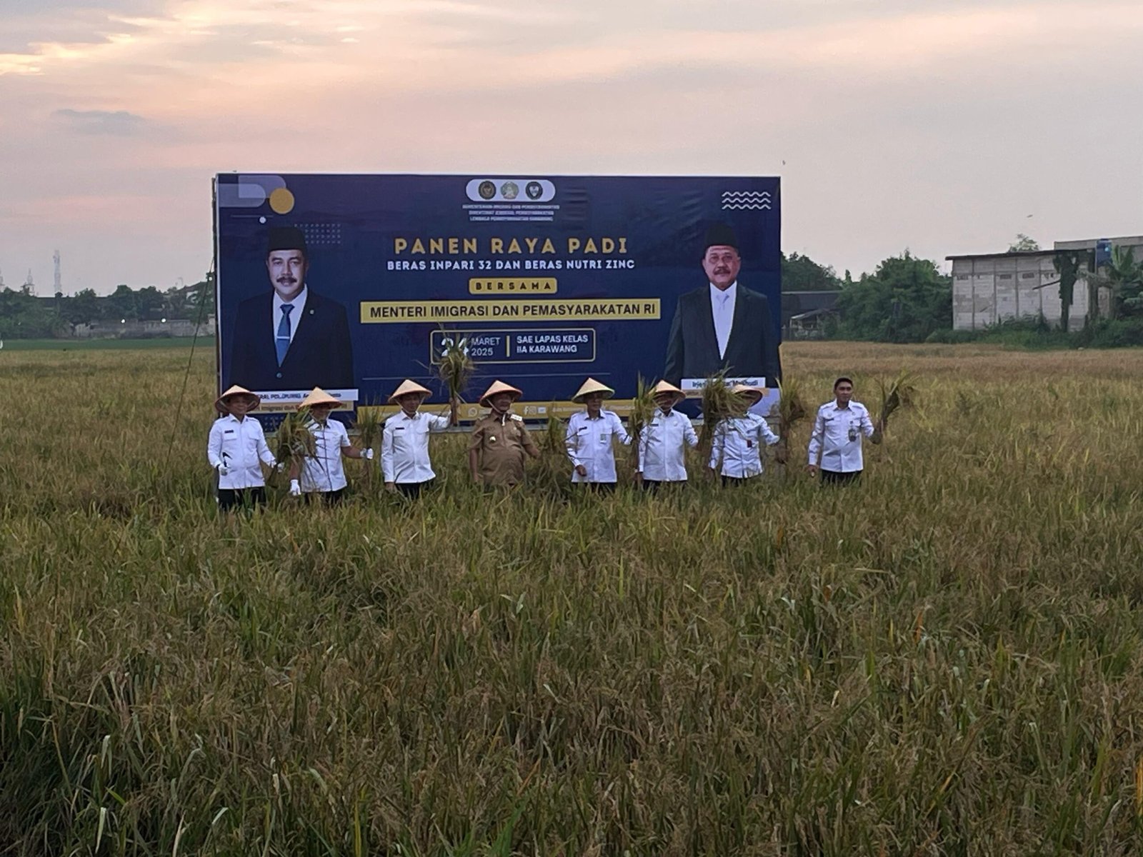 Panen raya ditandai dengan pemotongan padi oleh Sekjen Kemenimipas, Dirjenpas, serta Maslani selaku Wakil Bupati Karawang. Selain panen padi, mereka juga melakukan penanaman bibit sawi caisim dan penyebaran benih ikan nila salin.