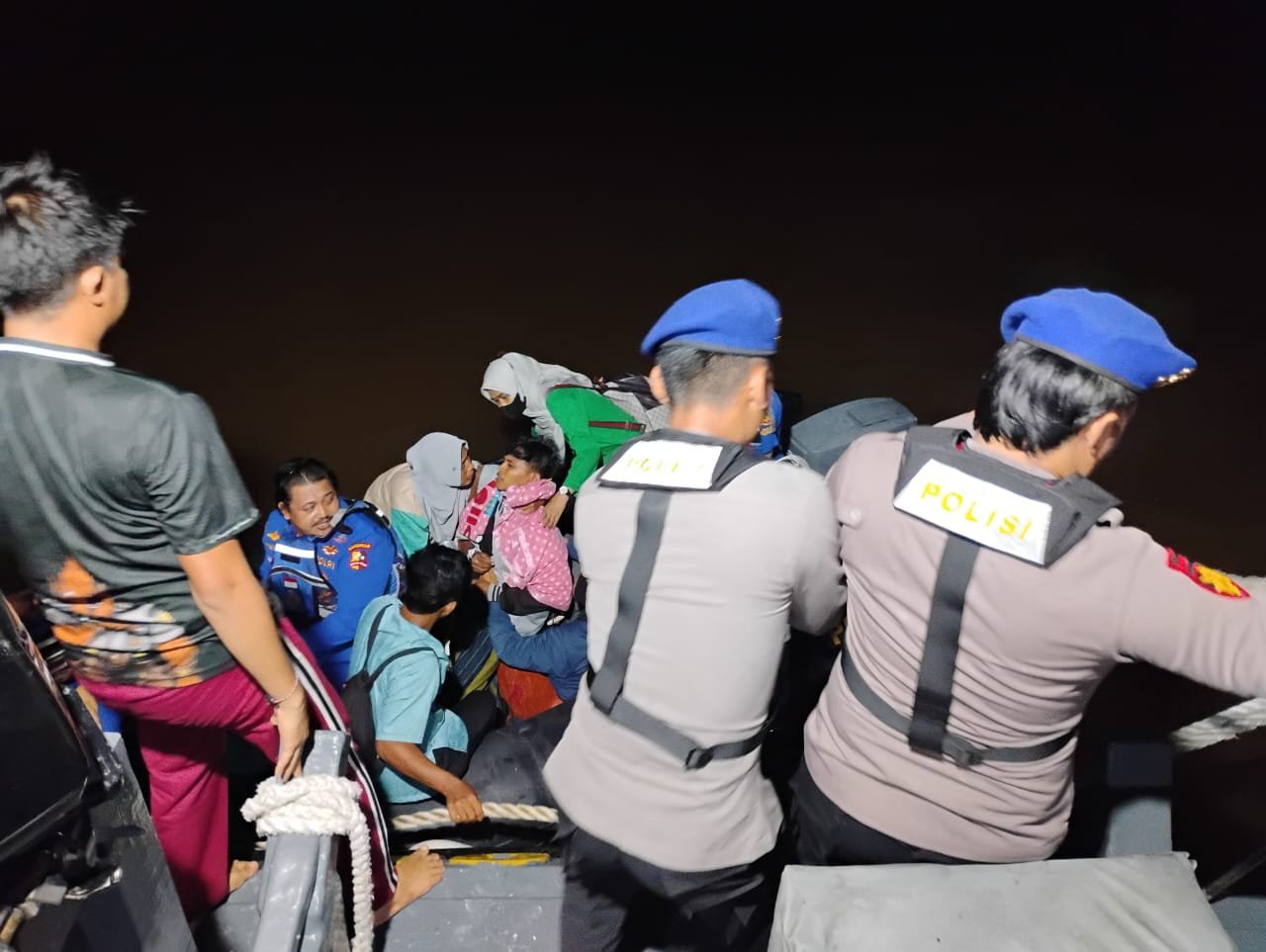 Tim penyelamat yang terdiri dari dua personel KP.TAKA- 3010 dan satu personel Satpolairud Polres Tanjab Barat berangkat menggunakan rubber boat dari Gudang Alloe menuju lokasi pasien pada pukul 02.30 WIB.