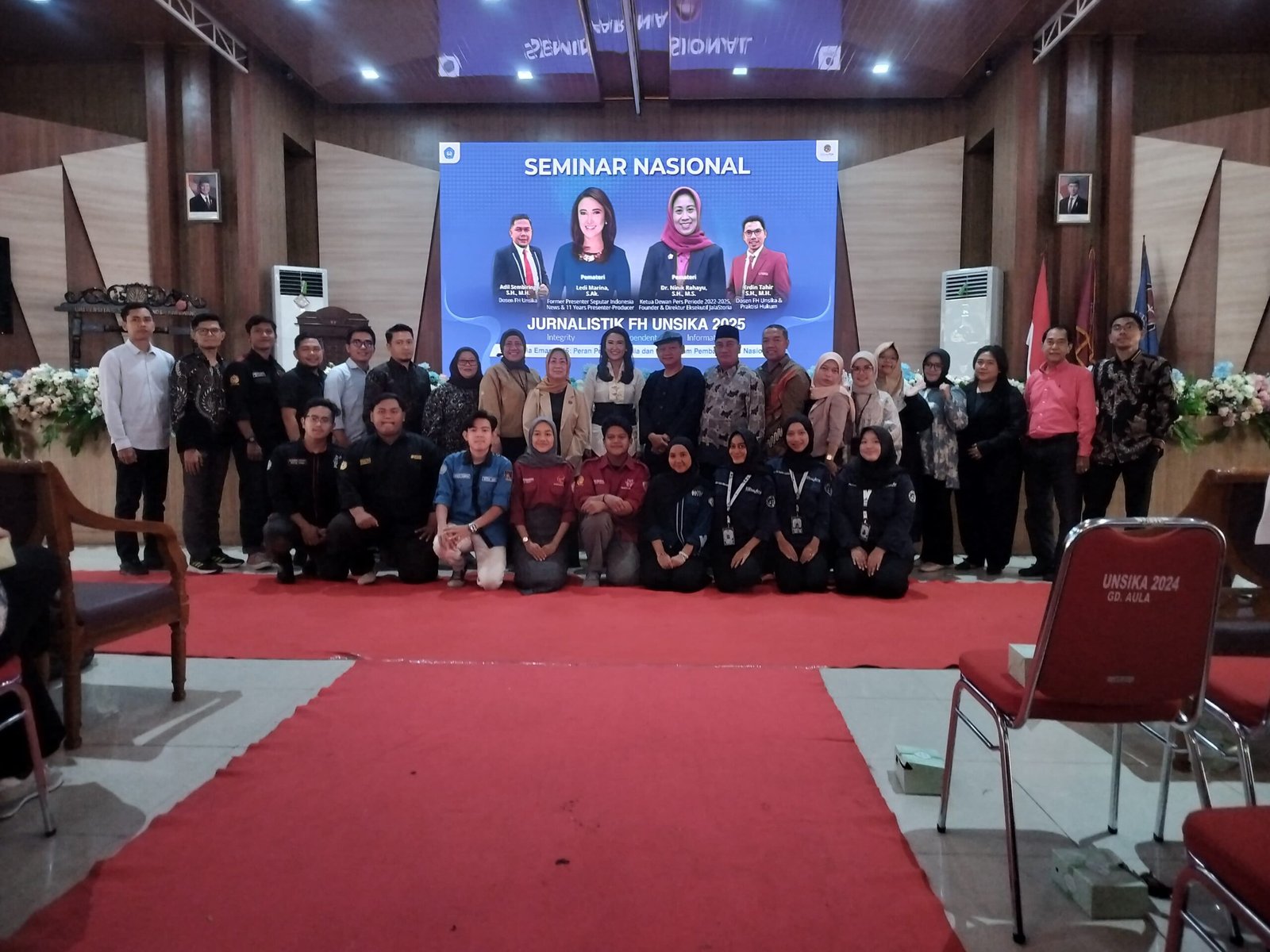 Karawang|JelajahBerita.Cklik| Unit Kegiatan Mahasiswa (UKM) Jurnalistik Fakultas Hukum Universitas Singaperbangsa Karawang (FH Unsika) sukses menyelenggarakan Seminar Nasional Jurnalistik 2025 pada Rabu, 20 Agustus 2025 di Aula Syekh Quro Unsika, Karawang. Kegiatan bertema “Indonesia Emas 2045: Peran Penting Media dan Pers dalam Pembangunan Nasional” ini berhasil menarik hampir 500 peserta dari Unsika, Universitas Buana Perjuangan (UBP), perguruan tinggi di Bekasi, Cikarang, hingga luar daerah.