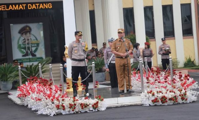 Membacakan Sambutan Kepala Kepolisian Republik Indonesia Jenderal Listiyo Sigit Prabowo ,Waka Kapolres Tanjab Barat Johan Christy Silaen S. I. K, M. H Didampingi Wakil Bupati Dr. H. Katamso SA, SE, ME mengatakan Kepolisian Republik Indonesia beserta seluruh Kapolda termasuk Kapolda Jambi dan Polres se Provinsi Jambi akan menggelar Operasi terpusat Ketupat 2025 di seluruh wilayah Provinsi Jambi dengan tagline “Mudik Aman, Keluarga Nyaman ” dimulai pada 23 Maret hingga 8 April 2025.